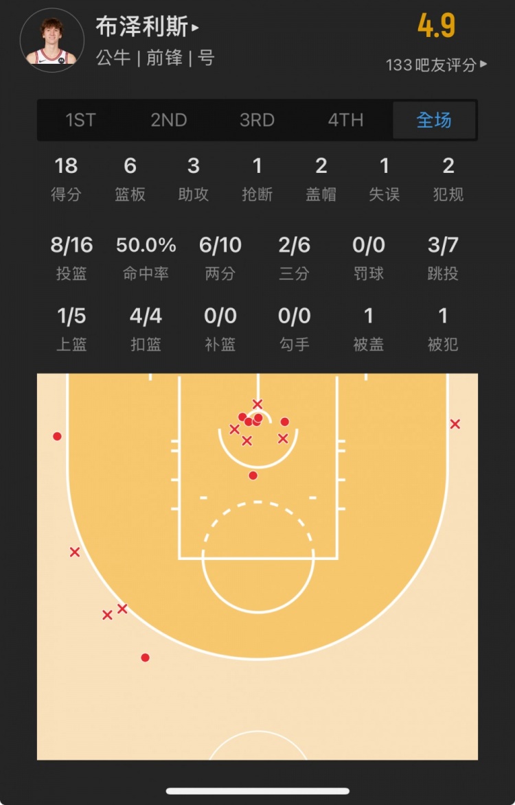 公牛11號(hào)秀 馬蒂斯-布澤利斯 登場(chǎng)30.2分鐘