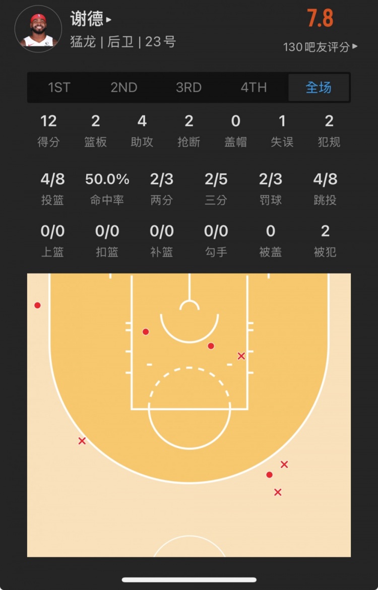 猛龍45號(hào)秀 賈馬爾-謝德 登場(chǎng)17.4分鐘