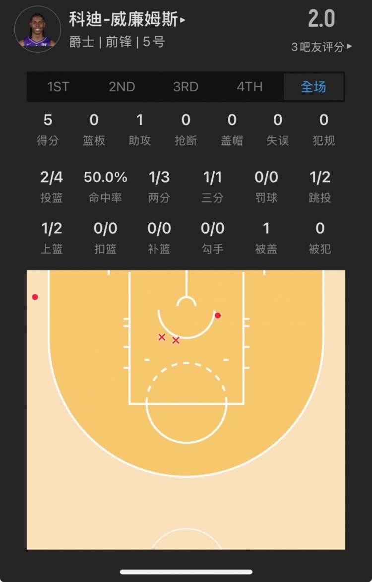 爵士10號(hào)秀 科迪-威廉姆斯 登場(chǎng)17.3分鐘
