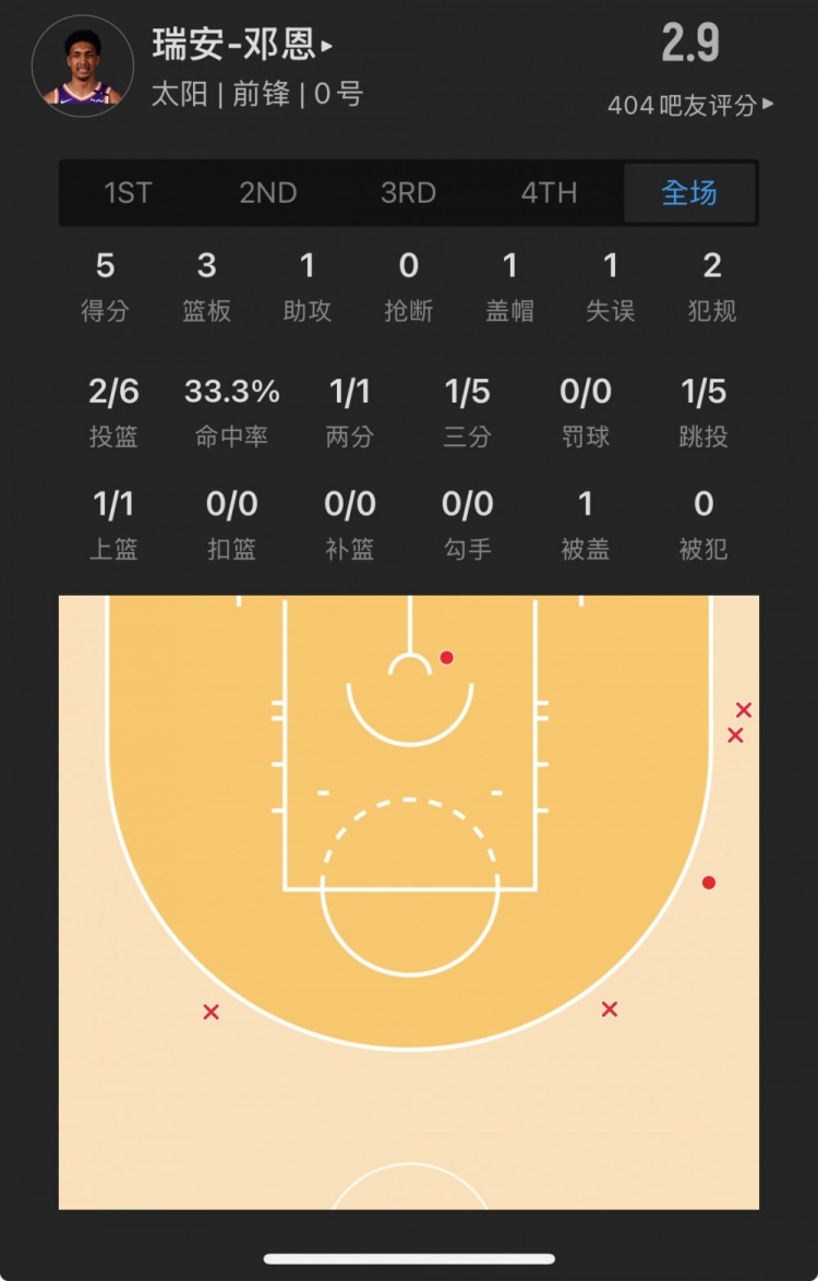 太陽(yáng)28號(hào)秀 瑞安-鄧恩 登場(chǎng)10.8分鐘