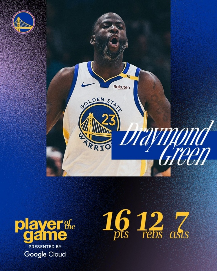賽后,勇士官推將追夢評選為本場最佳球員。