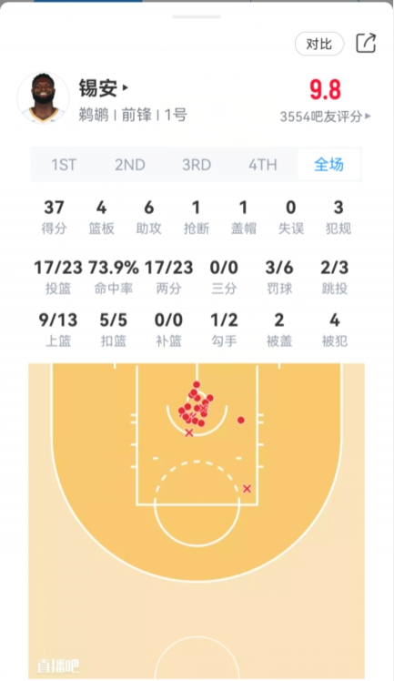 夸張!錫安和他的模板投籃熱圖對(duì)比:一個(gè)全在籃下 一個(gè)覆蓋半場