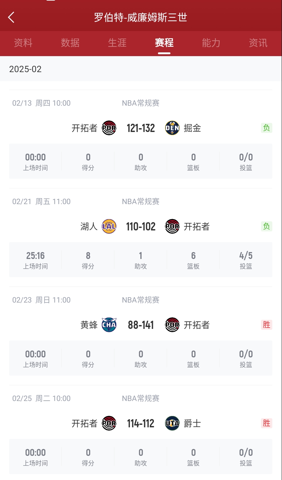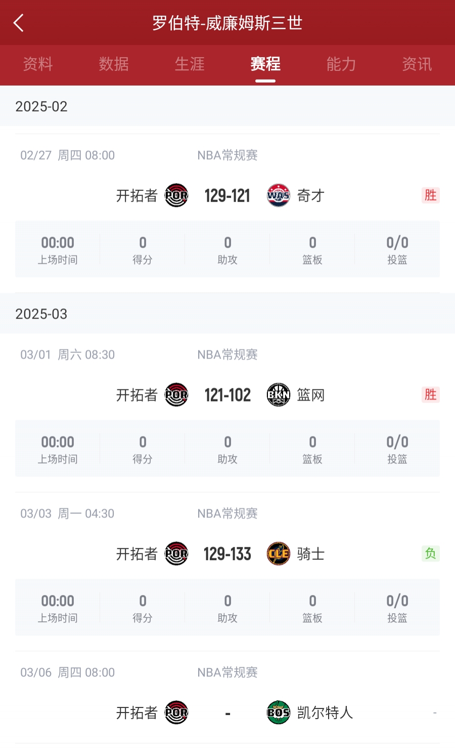 03月05日訊 今日,開(kāi)拓者官方宣布,球隊(duì)中鋒羅伯特-威廉姆斯因左膝蓋扭傷無(wú)緣明日對(duì)陣舊主凱爾特人的比賽。