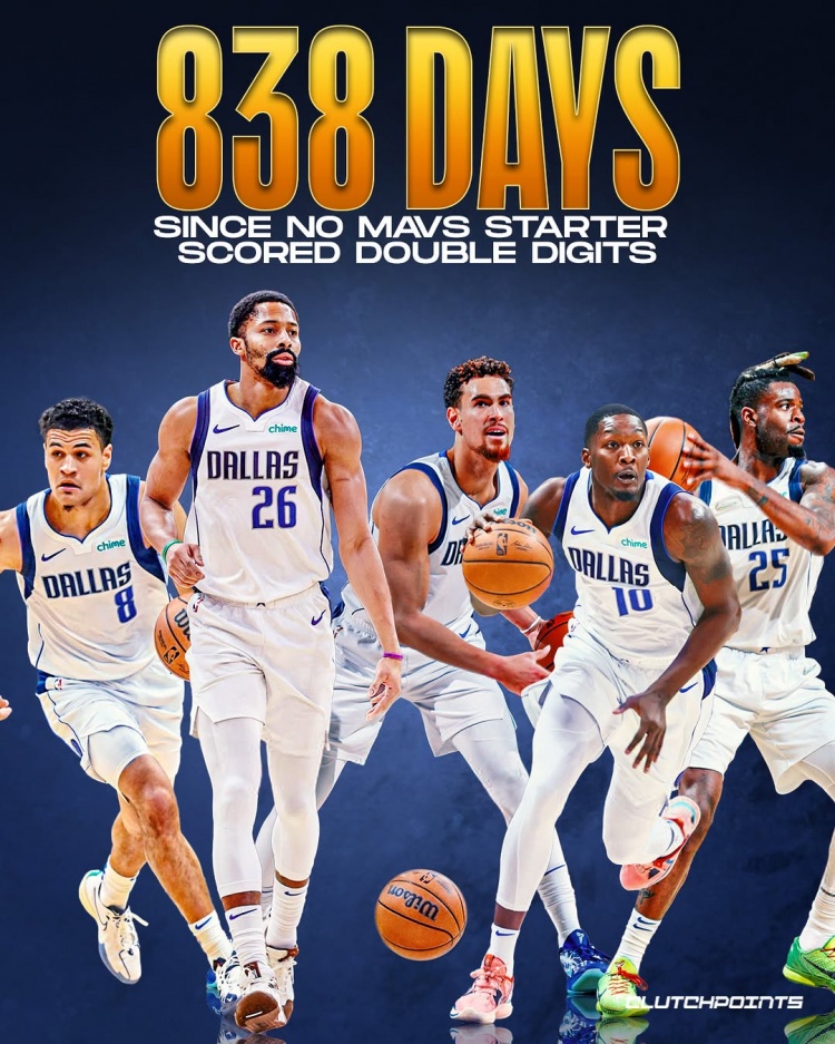 上次獨行俠沒有首發(fā)得分上雙已838天 可以追溯到2022年11月17日