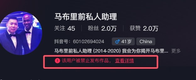 自稱馬布里前助理抖音賬號被禁言 昨天發(fā)布內(nèi)容希望老馬好好做人