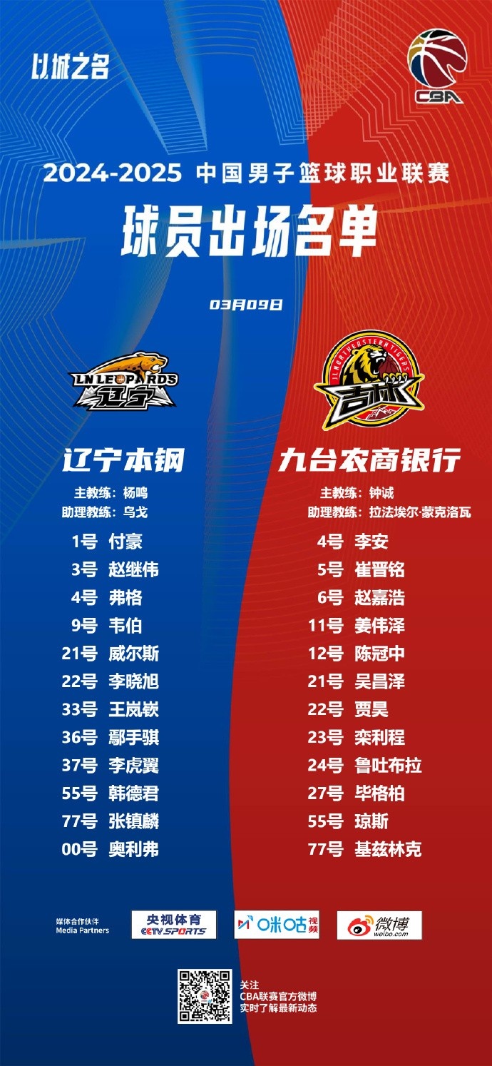 3月9日訊 今晚7點35分,遼寧男籃將在主場迎戰(zhàn)吉林男籃。