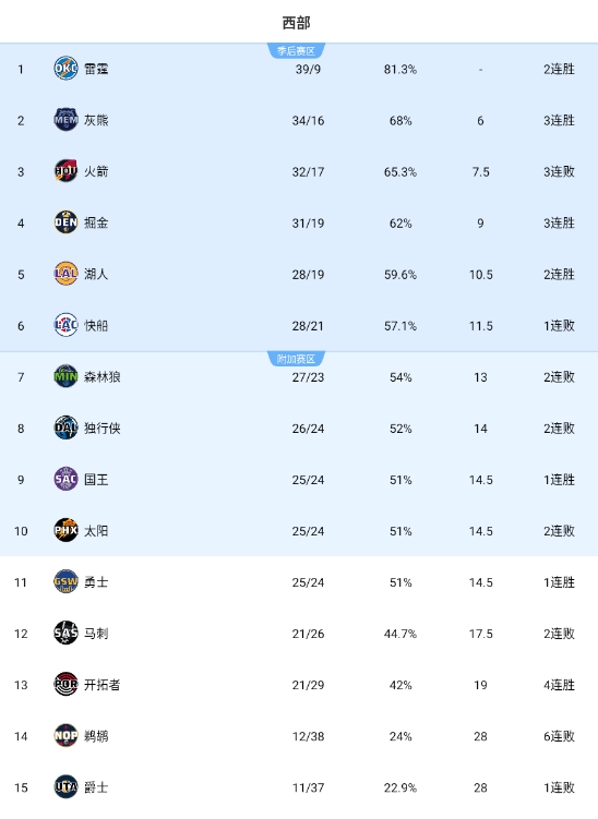 太陽戰(zhàn)績來到25勝24負(fù),跟今天贏球的國王和勇士再次戰(zhàn)平。由于排名規(guī)則,太陽排在西部第十。