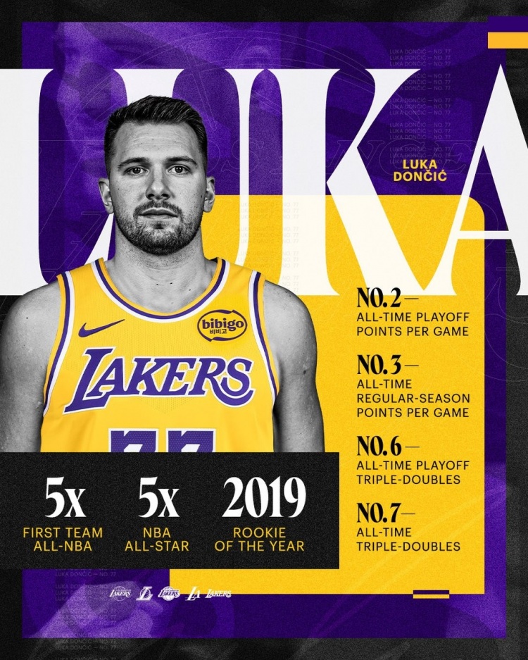 25歲!湖人曬東契奇履歷:5次一陣&5次全明星 季后賽場(chǎng)均30.9分