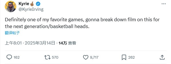 3月14日訊 此前,美媒發(fā)布了歐文5年前對陣公??诚?4分的集錦,歐文今天在社媒上進(jìn)行了回復(fù)。