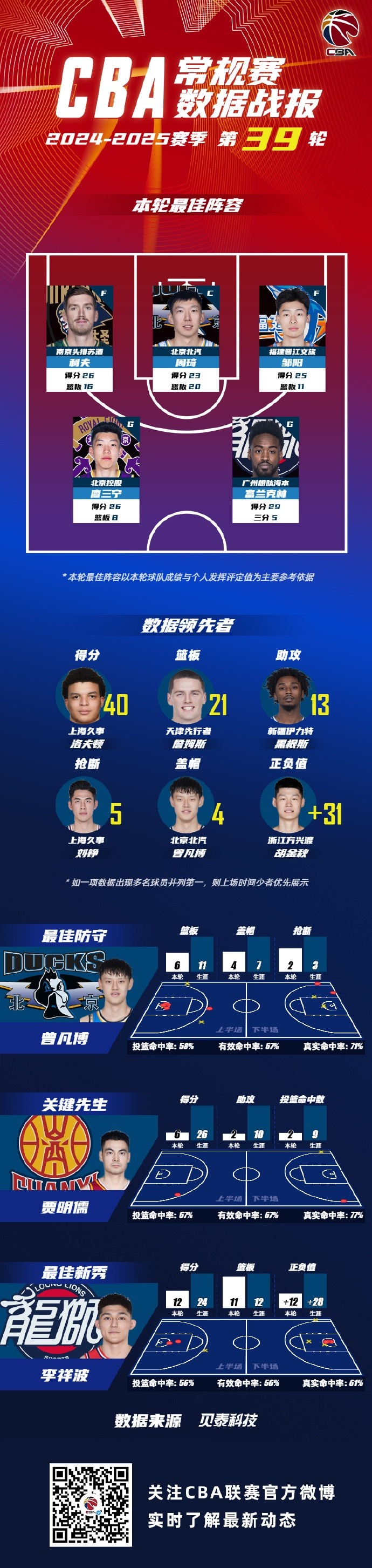 第39輪關(guān)鍵先生由來自山西汾酒職業(yè)籃球俱樂部的賈明儒獲得;