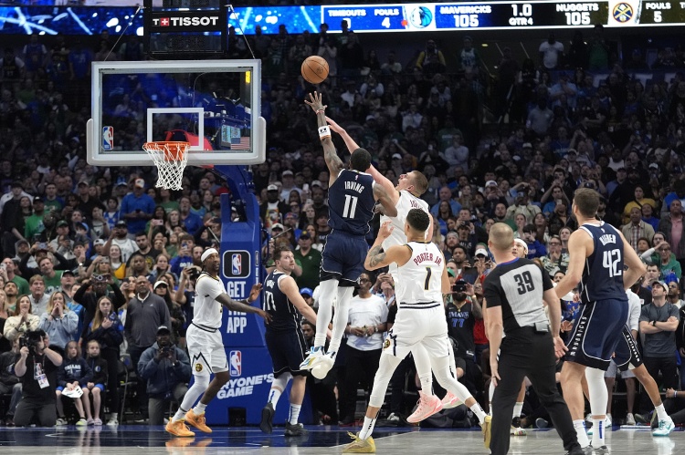 3月18日訊 一年前的今天,在獨(dú)行俠107-105險(xiǎn)勝掘金的比賽中,歐文在比賽最后時(shí)刻持球突破,在三分線內(nèi)一步的位置用左手拋投,皮球劃過(guò)上前補(bǔ)防的約基奇的指尖,球進(jìn)燈亮,完成絕殺。