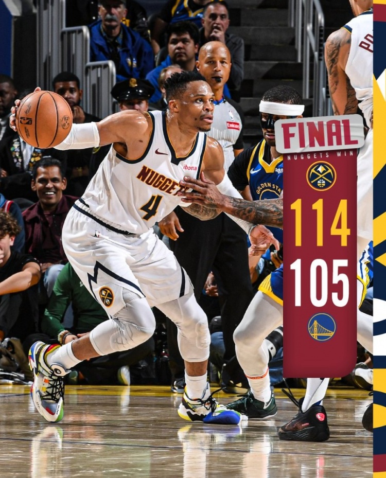 賽后,掘金官方曬出了贏球海報,威少登上封面。