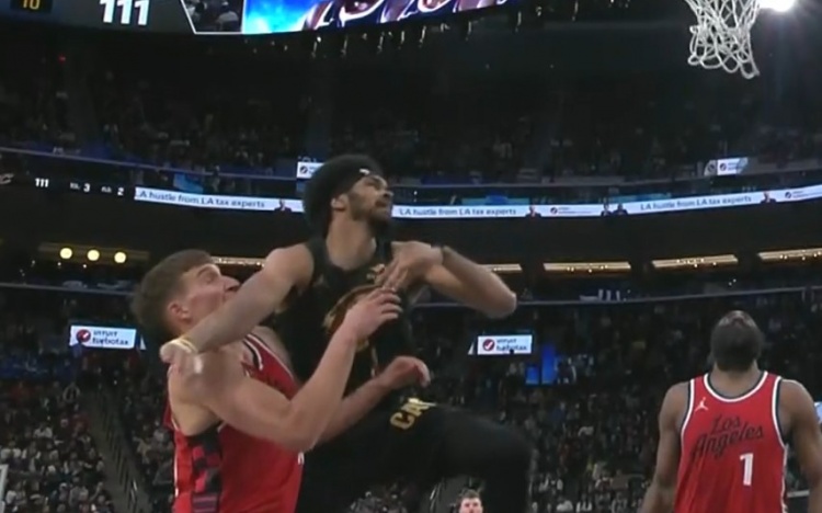 這一下很疼!阿倫落地時(shí)無(wú)意肘擊到博格丹的臉部 撞變形了