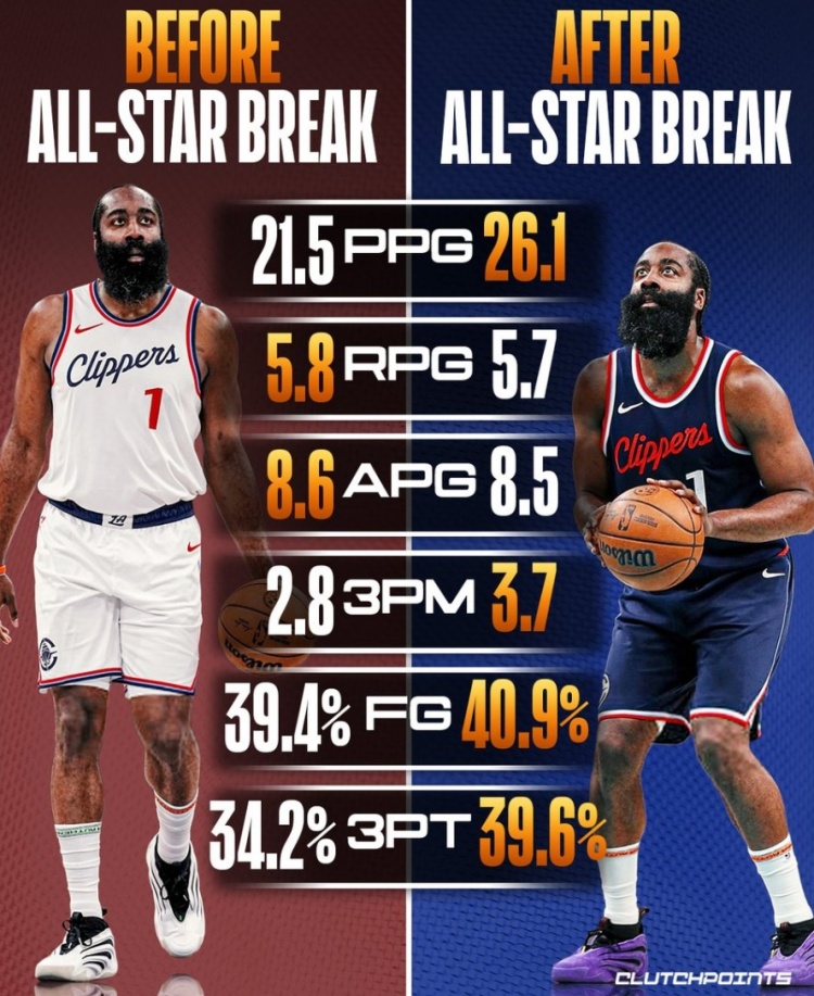 哈登全明星后場均26.1分5.7板8.5助 得分命中率皆有明顯上漲
