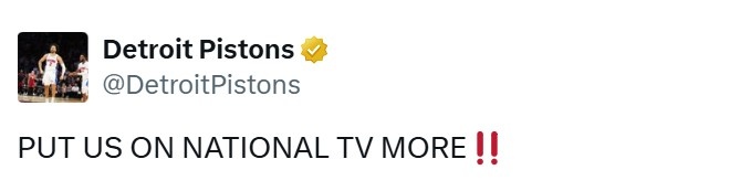 賽后,活塞官方喊話道:“多給我們排全美?!?/p>