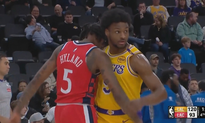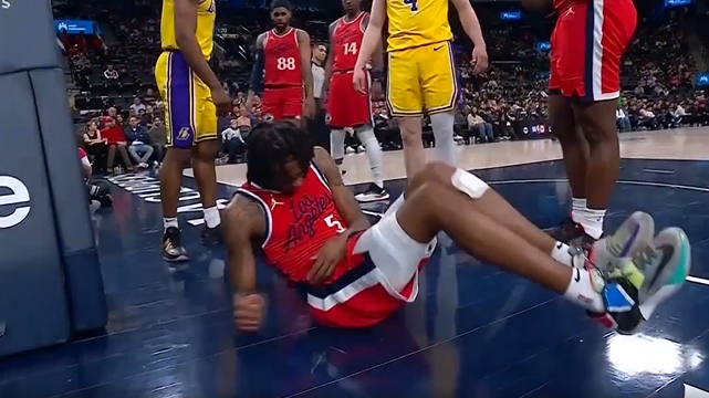 海蘭德快攻空中對(duì)抗布朗尼失衡平拍倒地 簡(jiǎn)單調(diào)整后重回比賽