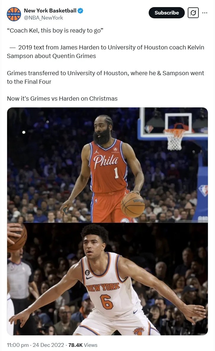 在休斯敦期間,格萊姆斯的擋拆防守和后場籃板能力大大提高了,這兩項后來成為了他在NBA的立足之本。2021年選秀大會,他在首輪第25順位被尼克斯摘走——對于曾經被看好拿下前五順位的天才來說,這個結果多少有些讓人失望,但格萊姆斯心態(tài)很好,這得益于他在學生時代一直養(yǎng)成的性格,格萊姆斯堅信,就算兩年前他以高順位進入NBA,該學的東西還是要從頭學起,從一個較低的起點出發(fā)不一定是壞事。