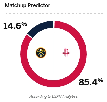 賽前ESPN給出了兩隊(duì)本場比賽的勝率:火箭85.4%、掘金14.6%。