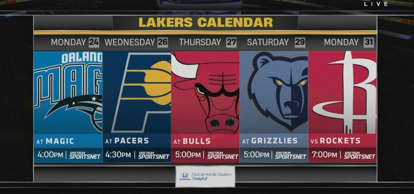 準備開啟東征!湖人未來5場對手:魔術(shù)/步行者/公牛/灰熊/火箭