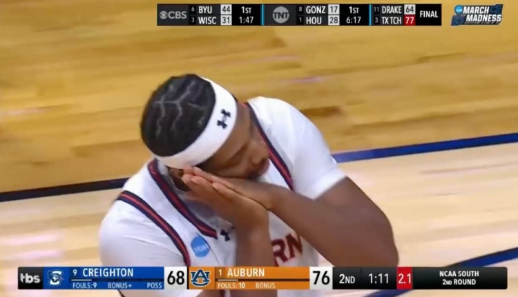 3月23日訊 NCAA瘋狂三月32強(qiáng)賽,奧本大學(xué)82-70擊敗克萊頓大學(xué)。