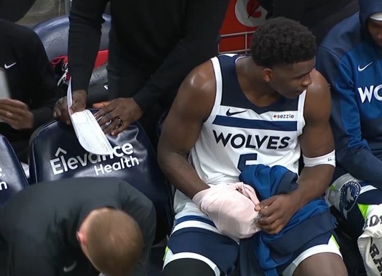 比賽期間,導播鏡頭拍到他在場邊冰敷右手的畫面。