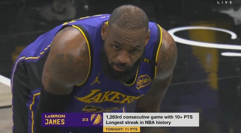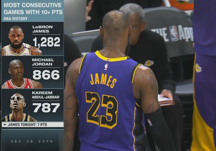 雖遲但到!詹姆斯第四節(jié)開(kāi)局連得8分連續(xù)1283場(chǎng)比賽得分上雙!