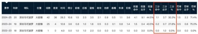 雖然標(biāo)榜的是“空間型四號位”,但有解說會在提到王浩然時用“非空間點(diǎn)”來形容他,他像MPJ那樣大跳投,但卻沒有MPJ的準(zhǔn)度,30.3%的三分球命中率在小球時代確實是不夠看......