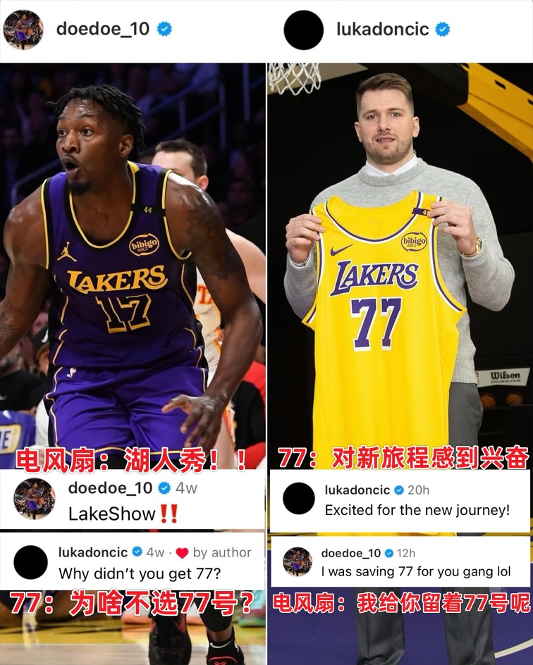 25年2月5日 東契奇被交易至湖人后發(fā)文:“對新旅程感到興奮!”電風(fēng)扇評論:“77號給你留著呢!”