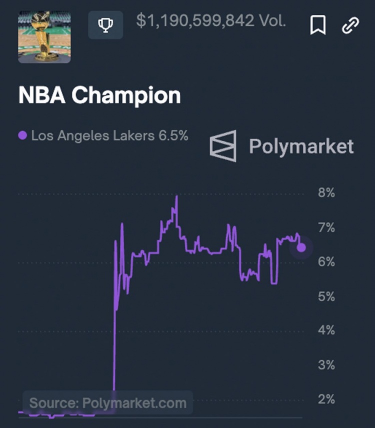 2月7日訊 NBA交易截止日已過,據(jù)博彩網(wǎng)站信息,湖人在交易截止日前奪冠賠率為+5782,目前暴漲至+270(押100,若中則連本帶利返還370),目前奪冠概率為6.5%。