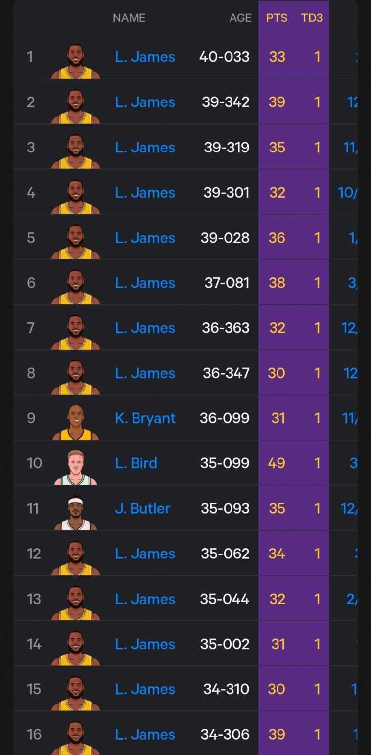 至此,40歲33天的詹姆斯再次刷新了自己保持的“聯(lián)盟砍三雙最老的球員”紀(jì)錄,原先紀(jì)錄是在詹姆斯39歲342天的時候創(chuàng)下。