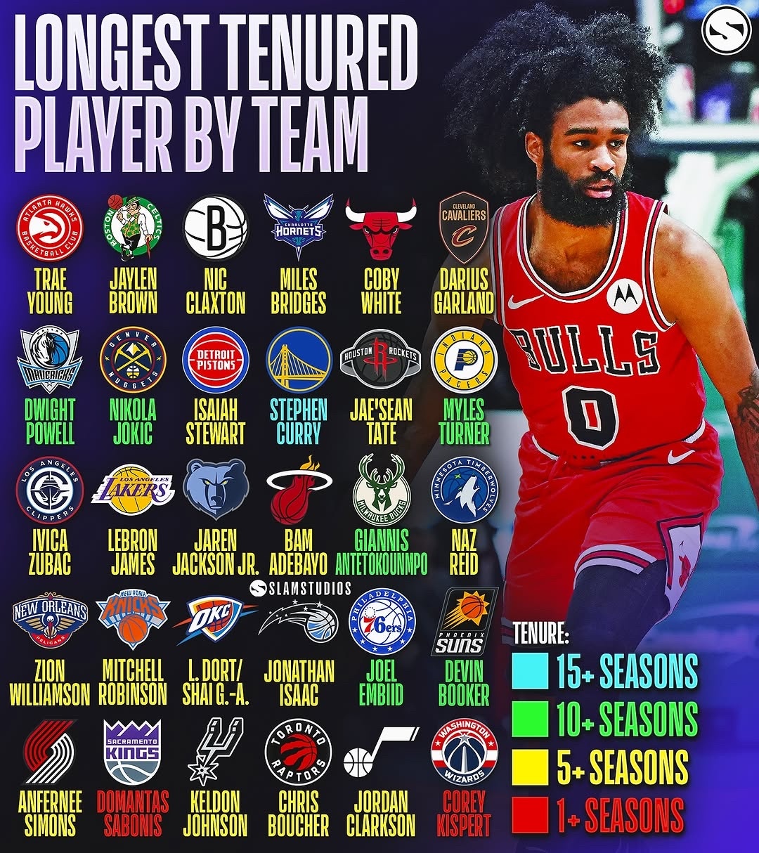 各隊(duì)現(xiàn)役在隊(duì)時(shí)間最長的球員