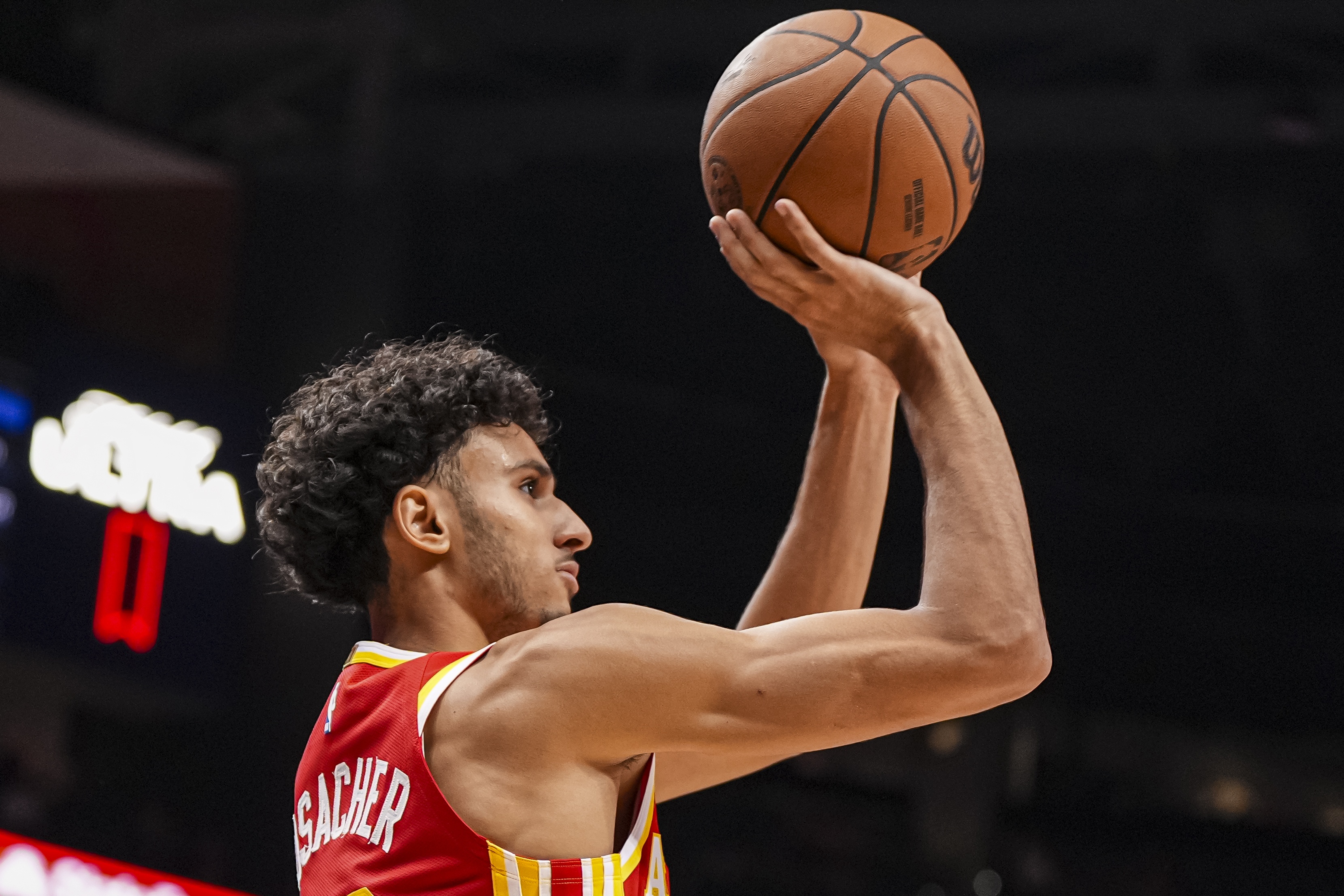 里薩謝迎來(lái)生涯里程碑,他(19歲306天)成為老鷹隊(duì)史最年輕500分150板50助,并且命中50個(gè)三分的球員。