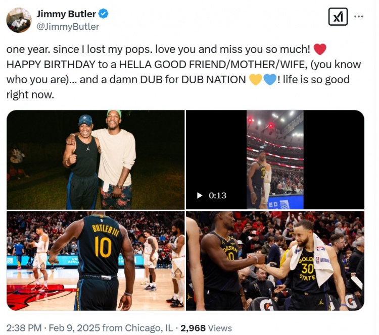 賽后,巴特勒更推道:“我失去我的父親已經一周年了。我愛你,也很想念你。??祝一個好朋友/母親/妻子生日快樂(將父親指代為這些角色)。(你知道你是誰)...今天對于勇士王國來說也是非常棒的一天。????????現(xiàn)在的生活是如此美好?!?/p>