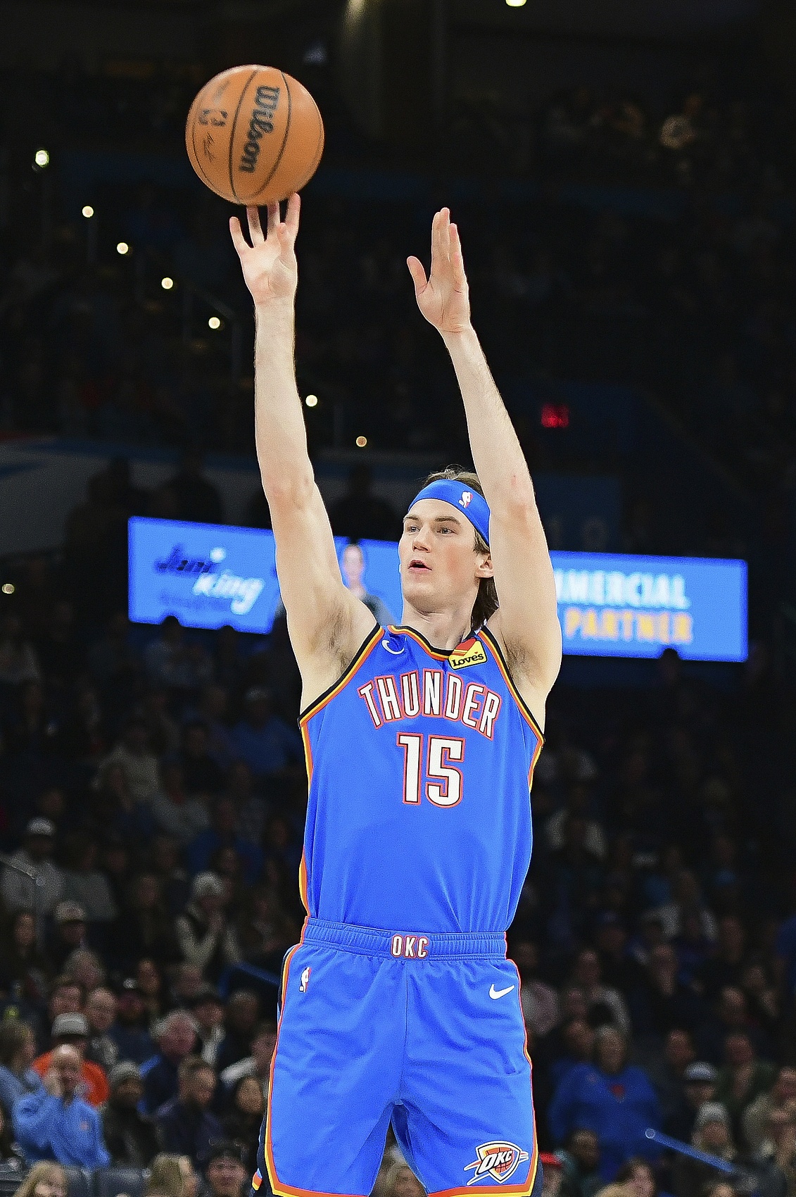 賽季至今,卡爾森代表雷霆出戰(zhàn)了15場比賽,場均3.1分1.7籃板。