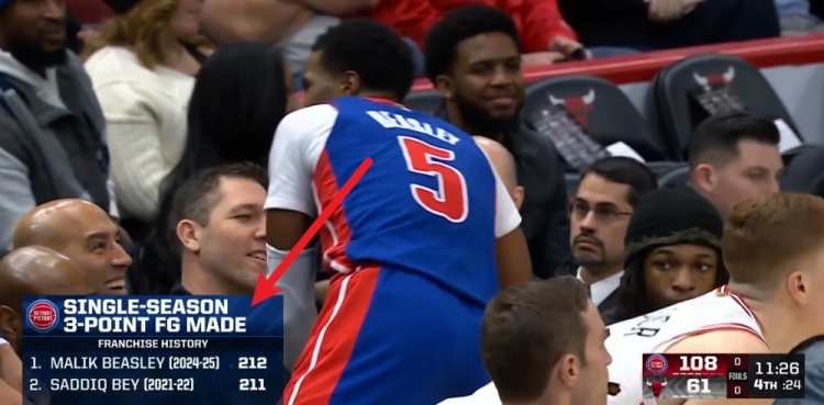 54場212記!馬利克-比斯利單賽季212記三分榮登隊史第一 貝排第二