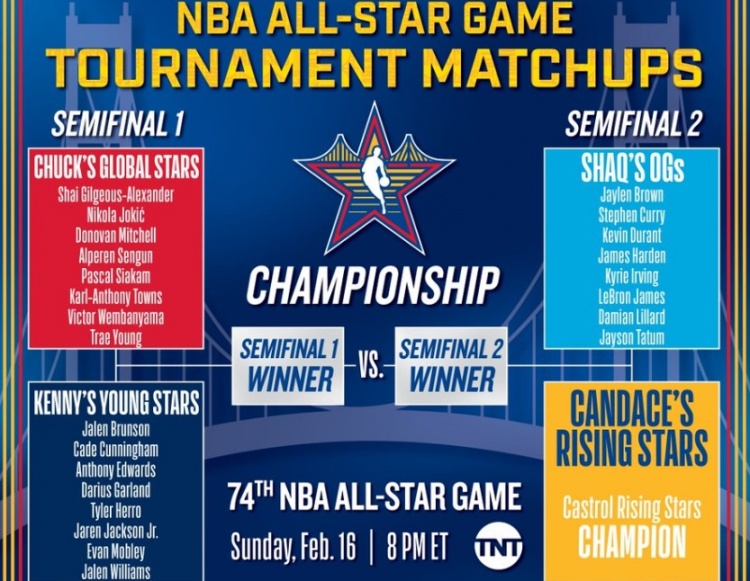 全明星正賽對(duì)陣情況:巴克利隊(duì)VS肯尼隊(duì) 奧尼爾隊(duì)VS新秀冠軍隊(duì)