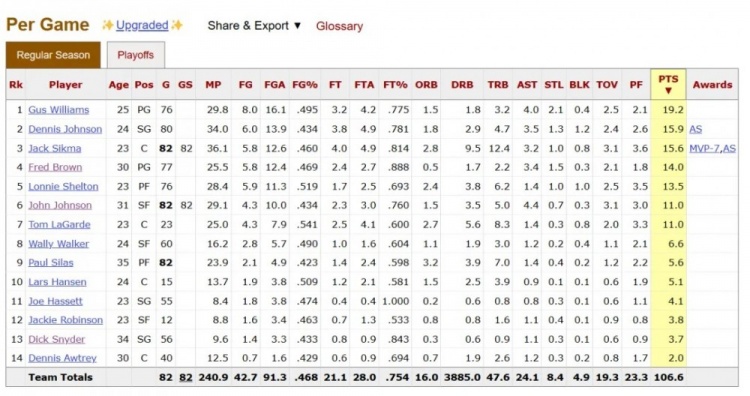 不過有一說一當時的超音速已經(jīng)全面換血,核心球員古斯-威廉姆斯(前不久才剛剛去世)、丹尼斯-約翰遜、杰克-西克瑪都是后面加入的