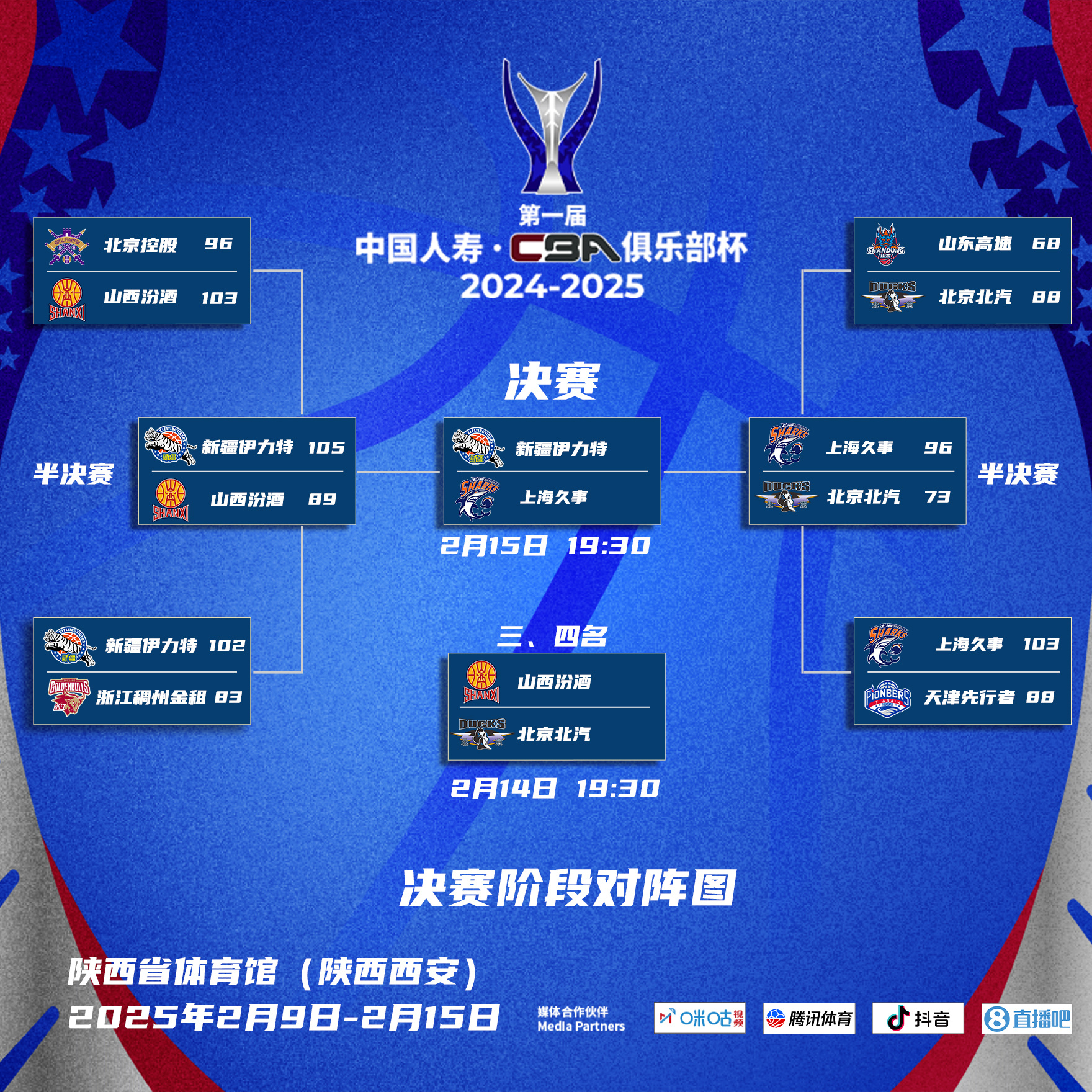 2月13日訊 CBA俱樂部杯決賽,上海將對陣新疆。