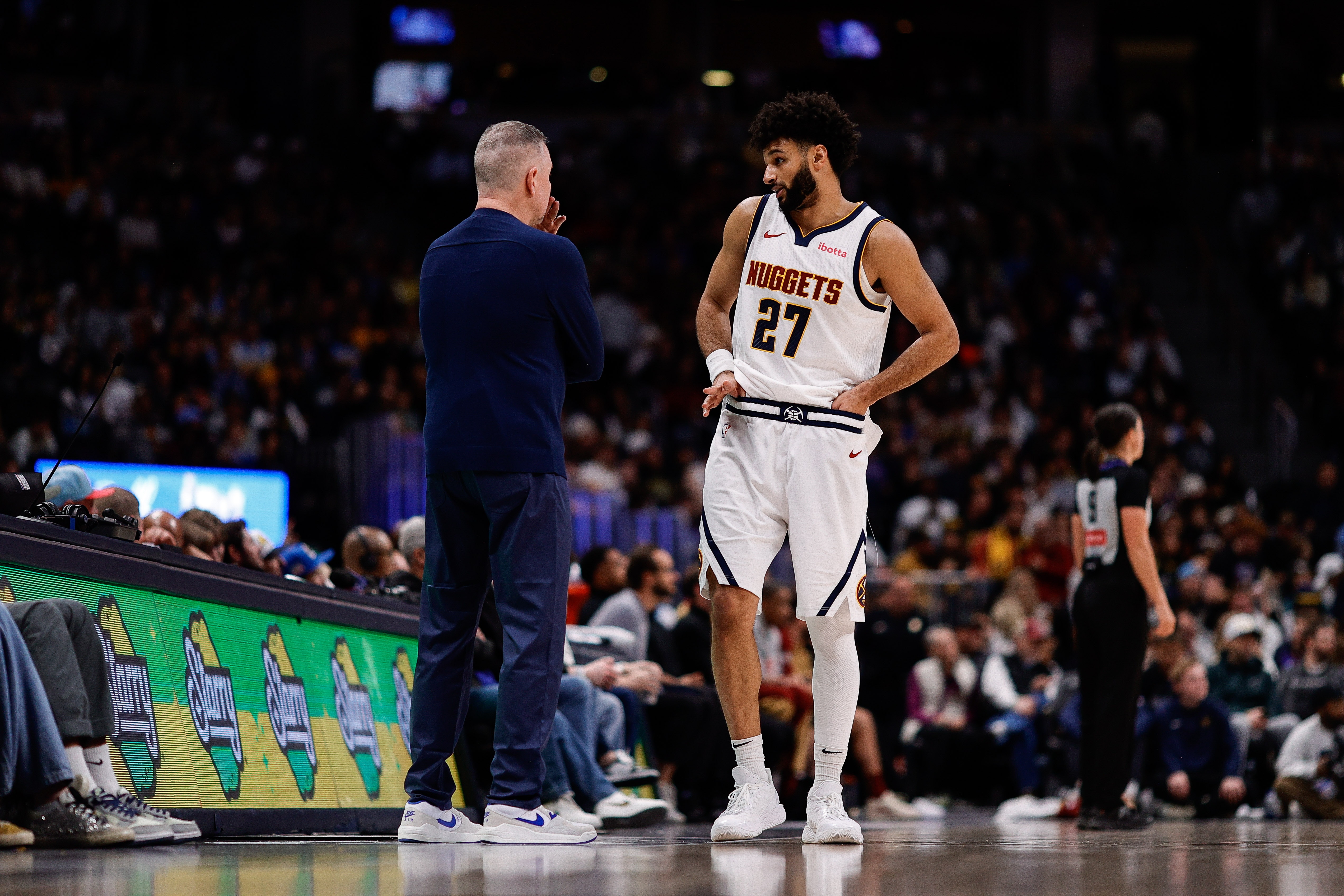 本場(chǎng)比賽,賈馬爾-穆雷進(jìn)出戰(zhàn)42分鐘,36中20,三分15中7,罰球9中8爆砍55分(生涯新高)4籃板5助攻2搶斷,正負(fù)值+26全場(chǎng)最高!