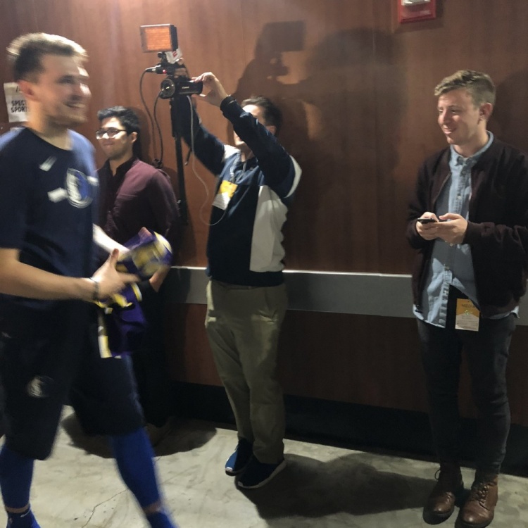 湖記Dave McMenamin更推曬照:“這些模糊的照片拍攝于2018年11月1日,菜鳥賽季的東契奇首次打完湖人后索要詹姆斯球衣,隨后東契奇前往湖人更衣室從保安手中拿到了球衣?!?/p>