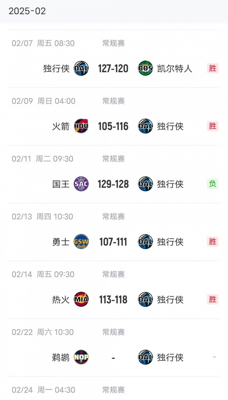 2月14日訊 NBA常規(guī)賽,獨行俠118-113力克熱火。據(jù)統(tǒng)計,最近5場比賽,獨行俠取得了4勝1負,唯一輸球是加時不敵國王。目前,獨行俠30勝26負排名西部第八。 標簽: NBA 籃球 西部 獨行俠
