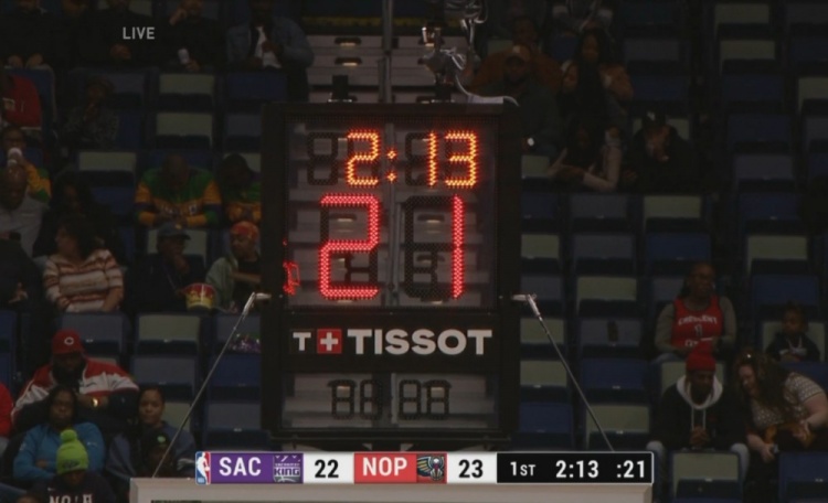 怎么還沒(méi)修好...鵜鶘主場(chǎng)計(jì)時(shí)器壞了&工作人員甚至搬了新的出來(lái)!