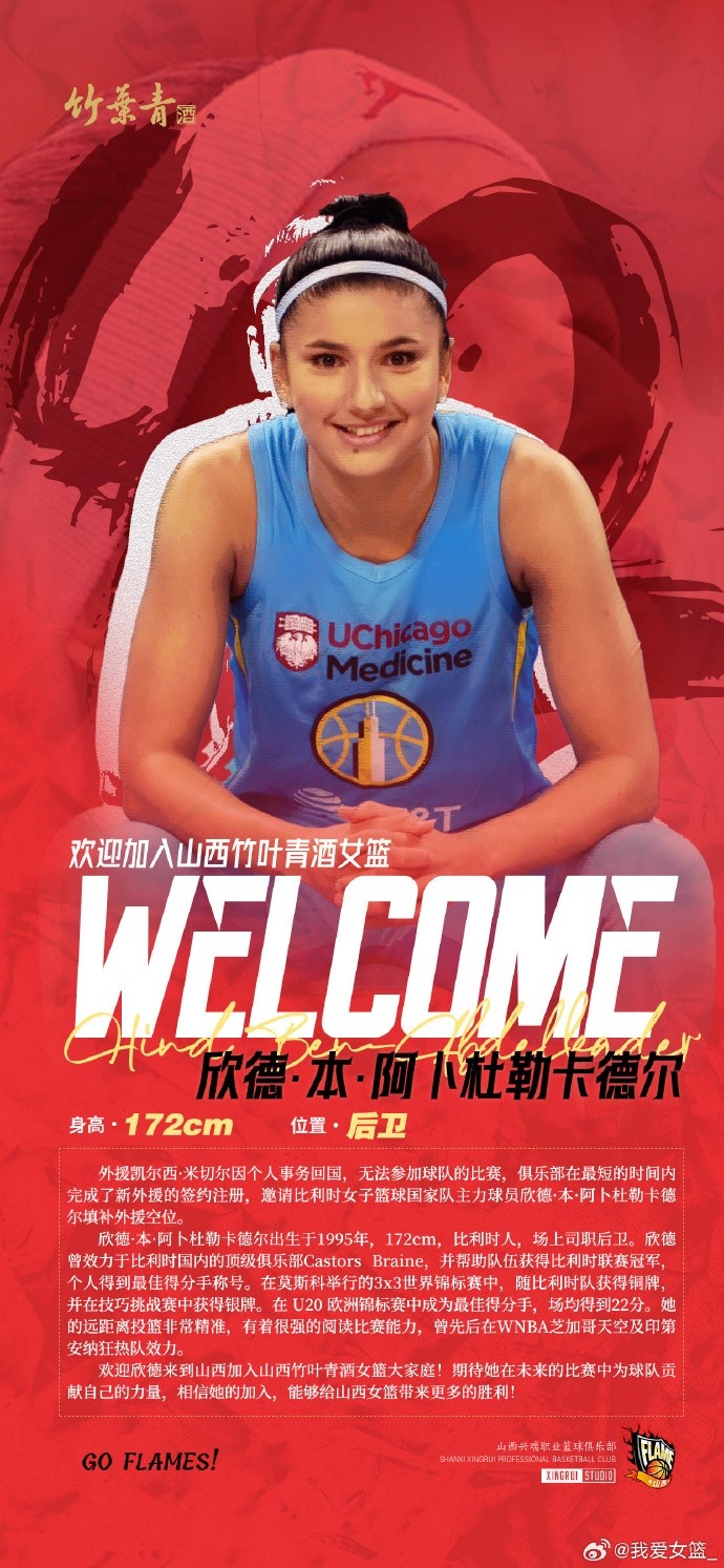 山西女籃官方介紹:外援凱爾西-米切爾因個人事務回國,無法參加球隊的比賽,俱樂部在最短的時間內完成了新外援的簽約注冊,邀請比利時女子籃球國家隊主力球員欣德-本-阿卜杜勒卡德爾填補外援空位。