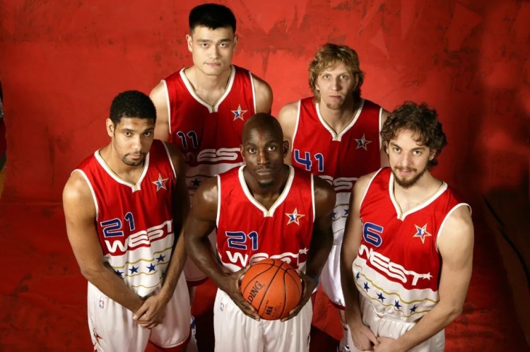 當然,只看全明星,那些年的正賽陣容中也始終保持了一定數量的國際球員,姚明、諾維茨基、納什、帕克、加索爾,然后吉諾比利、奧庫等偶爾拿張體驗卡。但可以明顯看出西部隊基本總是包圓兒,東西部嚴重不平衡。