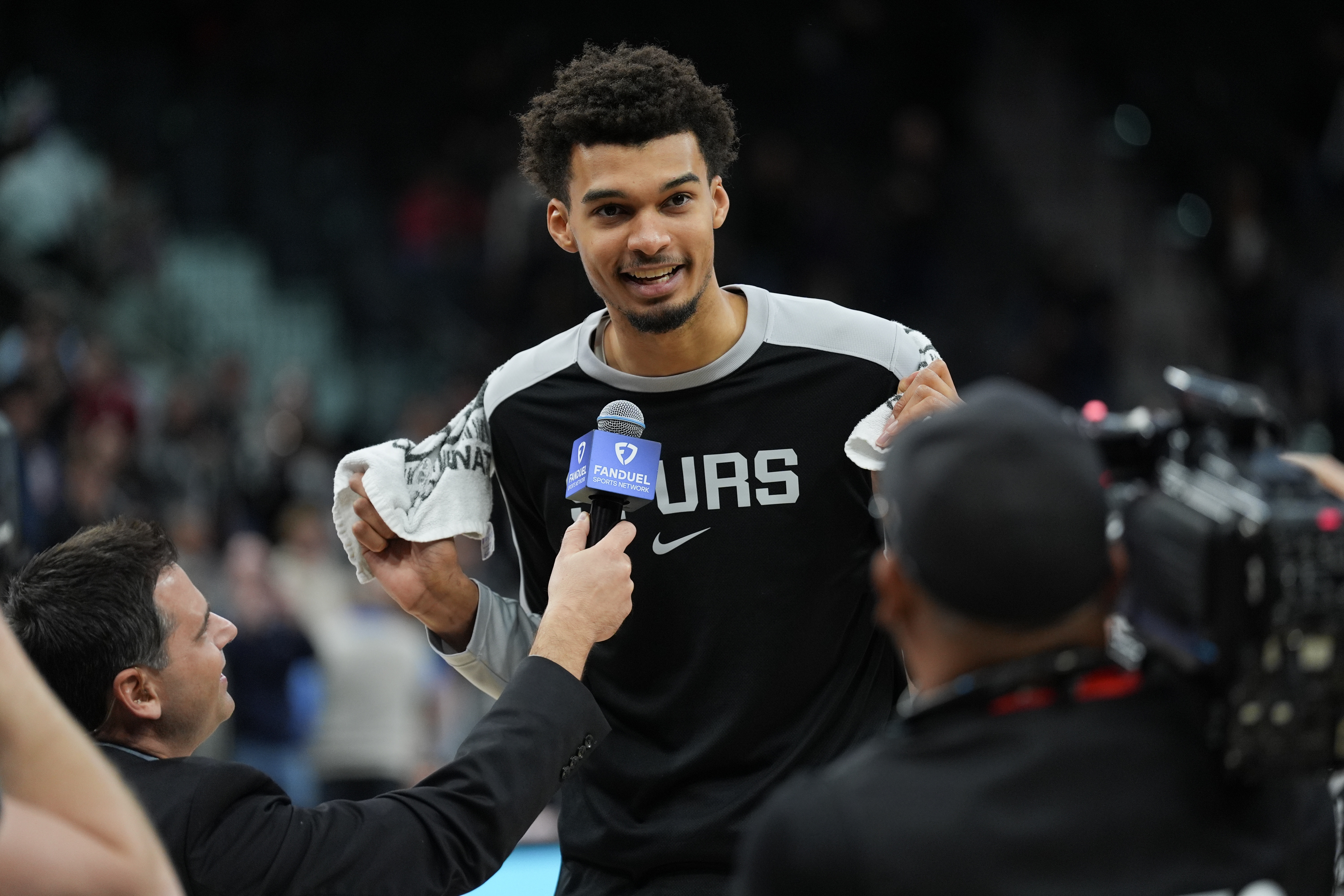 文班亞馬笑了。只是笑了笑。這就是他的回答。