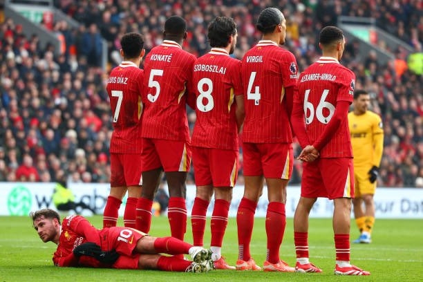 利物浦2-1狼隊的比賽中,紅軍排出了超貴人墻,6人的總身價高達(dá)3.93億歐。