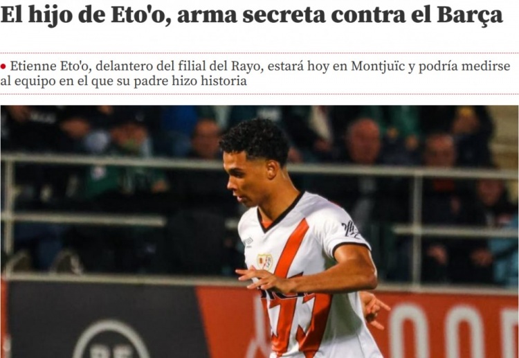 2月17日訊 《世界體育報》報道,埃托奧的兒子埃蒂安-埃托奧今晚將進(jìn)入巴列卡諾一線隊名單,可能出戰(zhàn)巴薩。