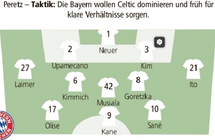 2月18日訊 北京時間周三凌晨的歐冠淘汰賽附加賽次回合,拜仁將在主場迎戰(zhàn)凱爾特人,《慕尼黑日報》對主隊的首發(fā)陣容進行了預(yù)測,凱恩、薩內(nèi)、奧利塞組成進攻三叉戟。