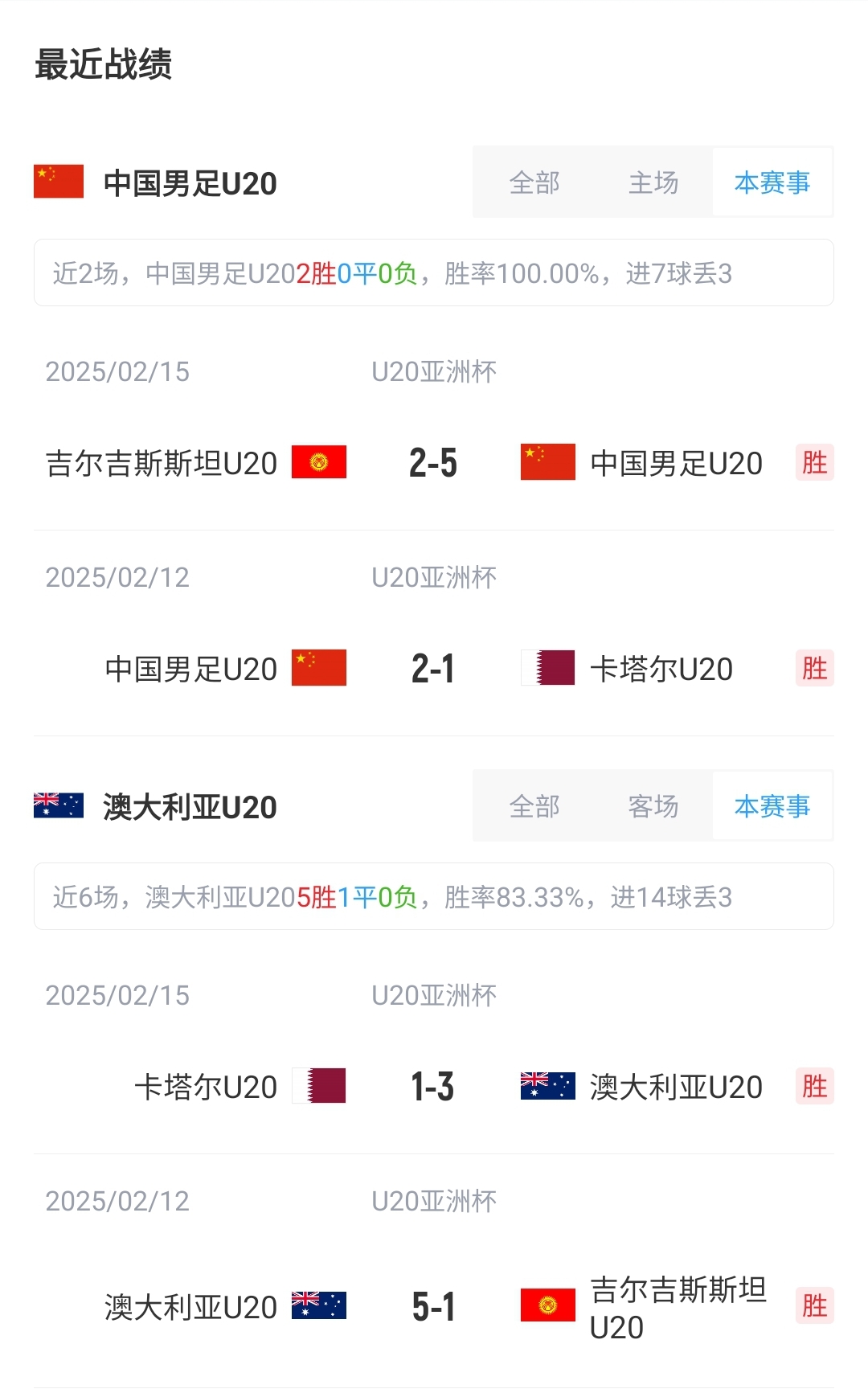 目前中國男足U20和澳大利亞U20均取得兩連勝,提前晉級八強(qiáng),淘汰賽的對手將是B組的前兩名(A1vsB2,A2vsB1)。