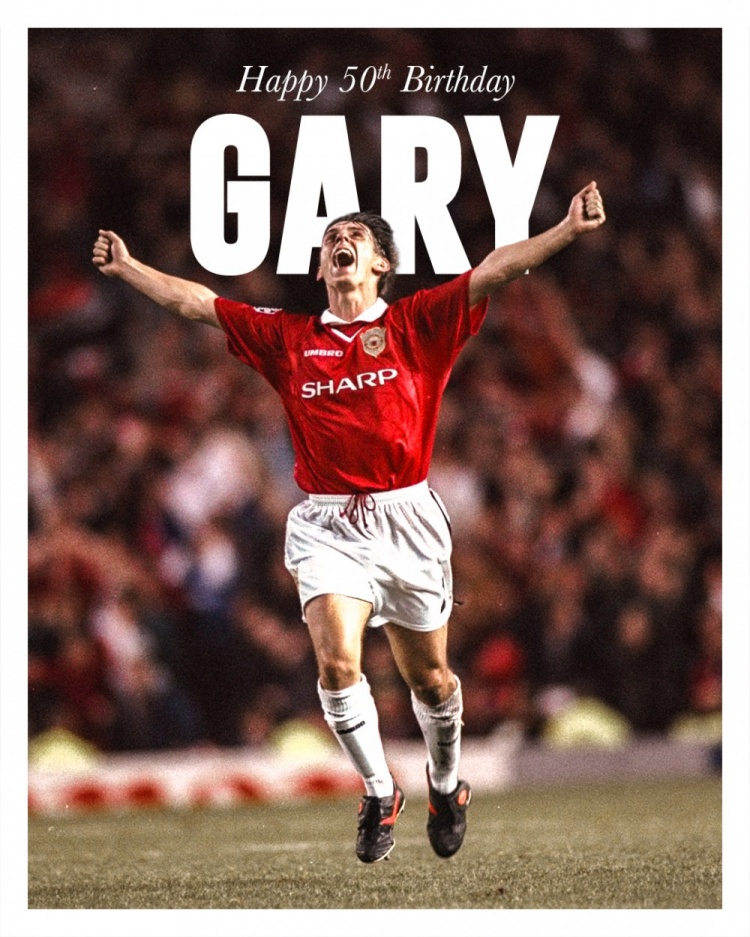 2月18日訊 今天是加里-內(nèi)維爾的50歲生日,曼聯(lián)官方為他送上祝福。